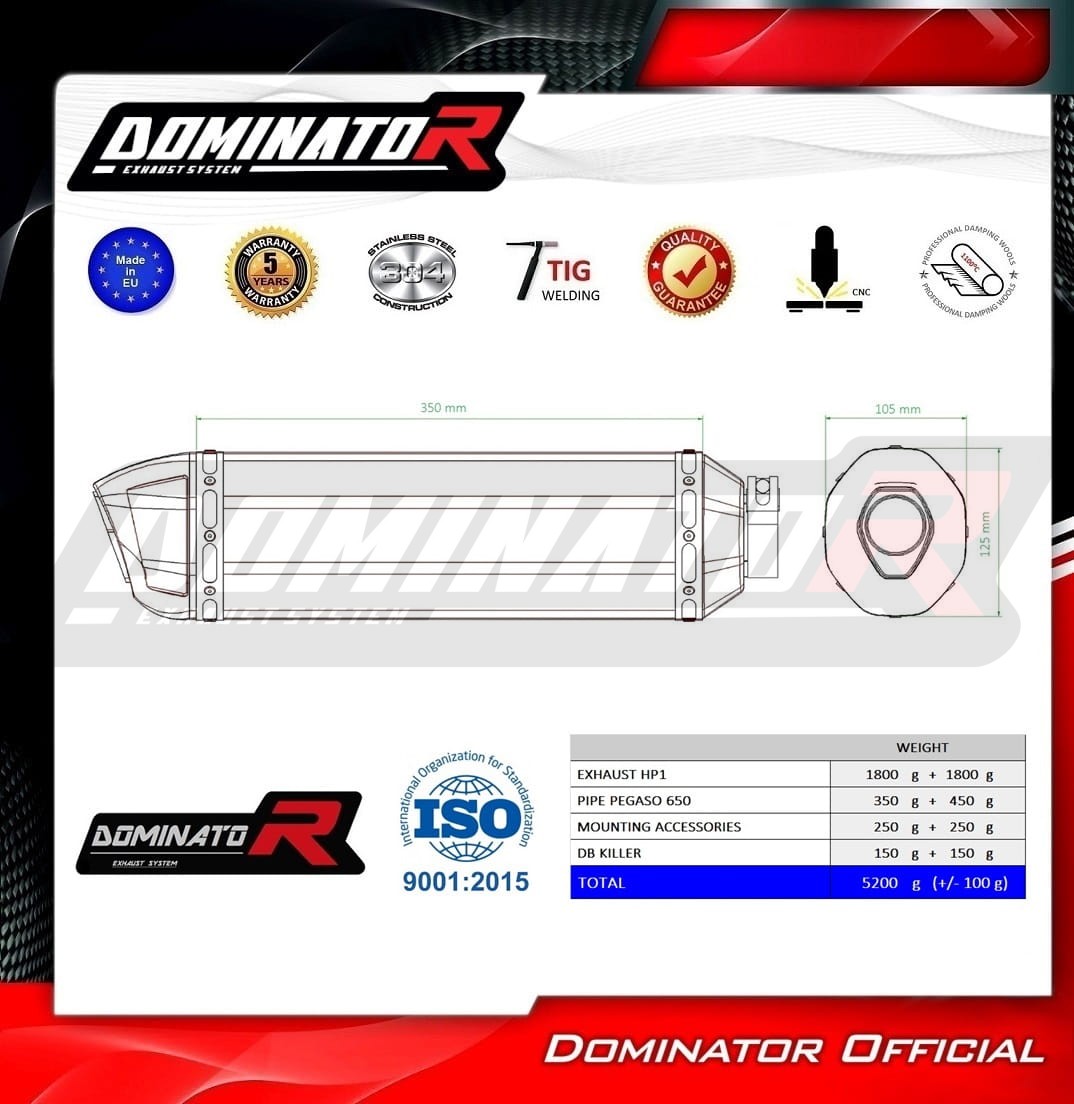 The Dominator exhaust will change the nature of your motorcycle giving it a unique sound. The exhaust system will increase the power and torque of the engine, while reducing the weight of the muffler.