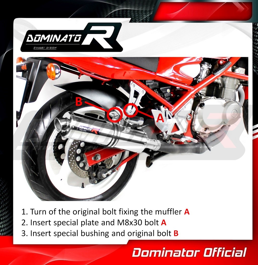 The Dominator Exhaust will change the nature of your motorcycle giving it a unique sound. The Exhaust system will increase the power and torque of the engine, while reducing the weight of the muffler.