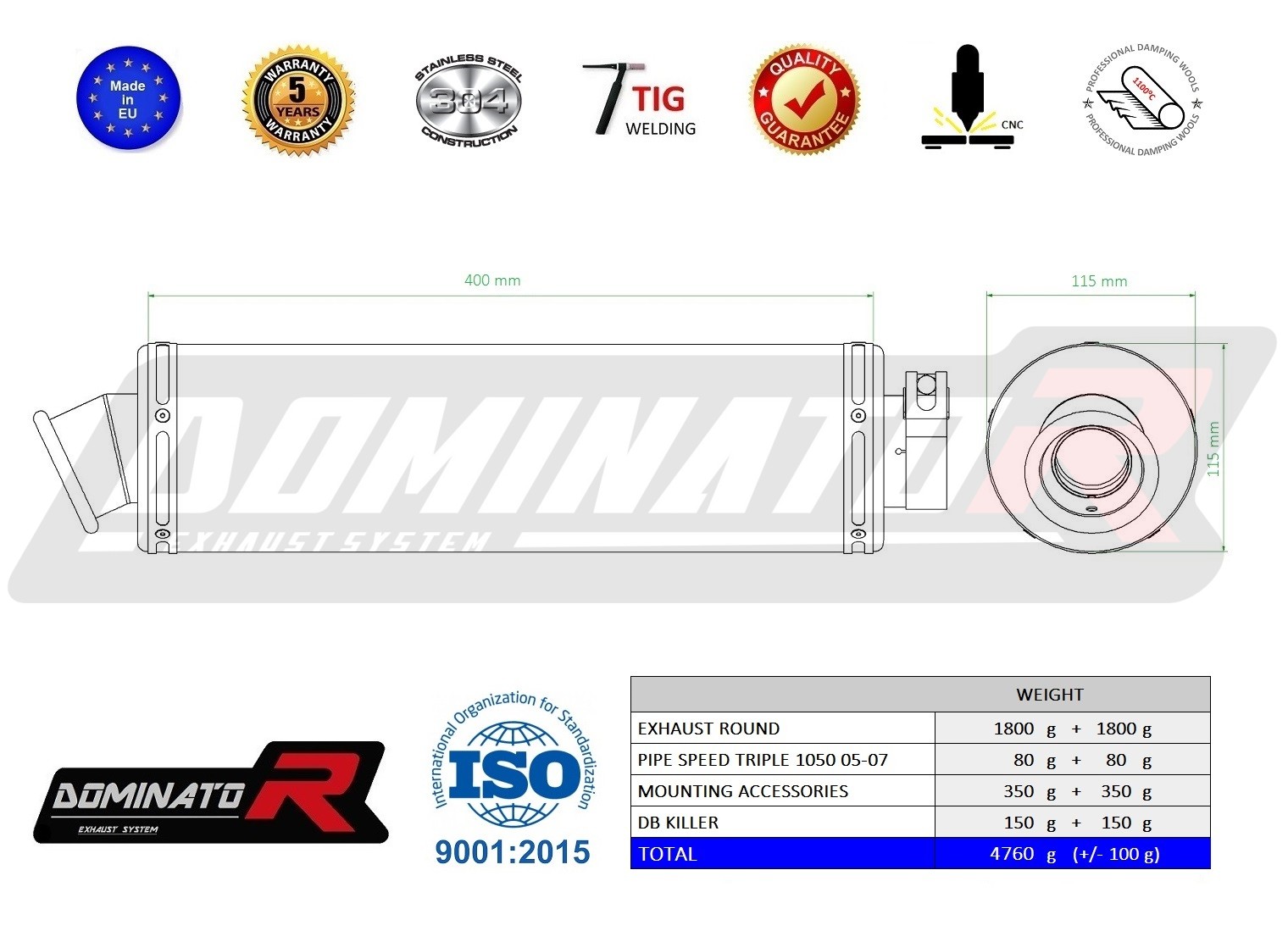 - 5 years Dominator Official Warranty