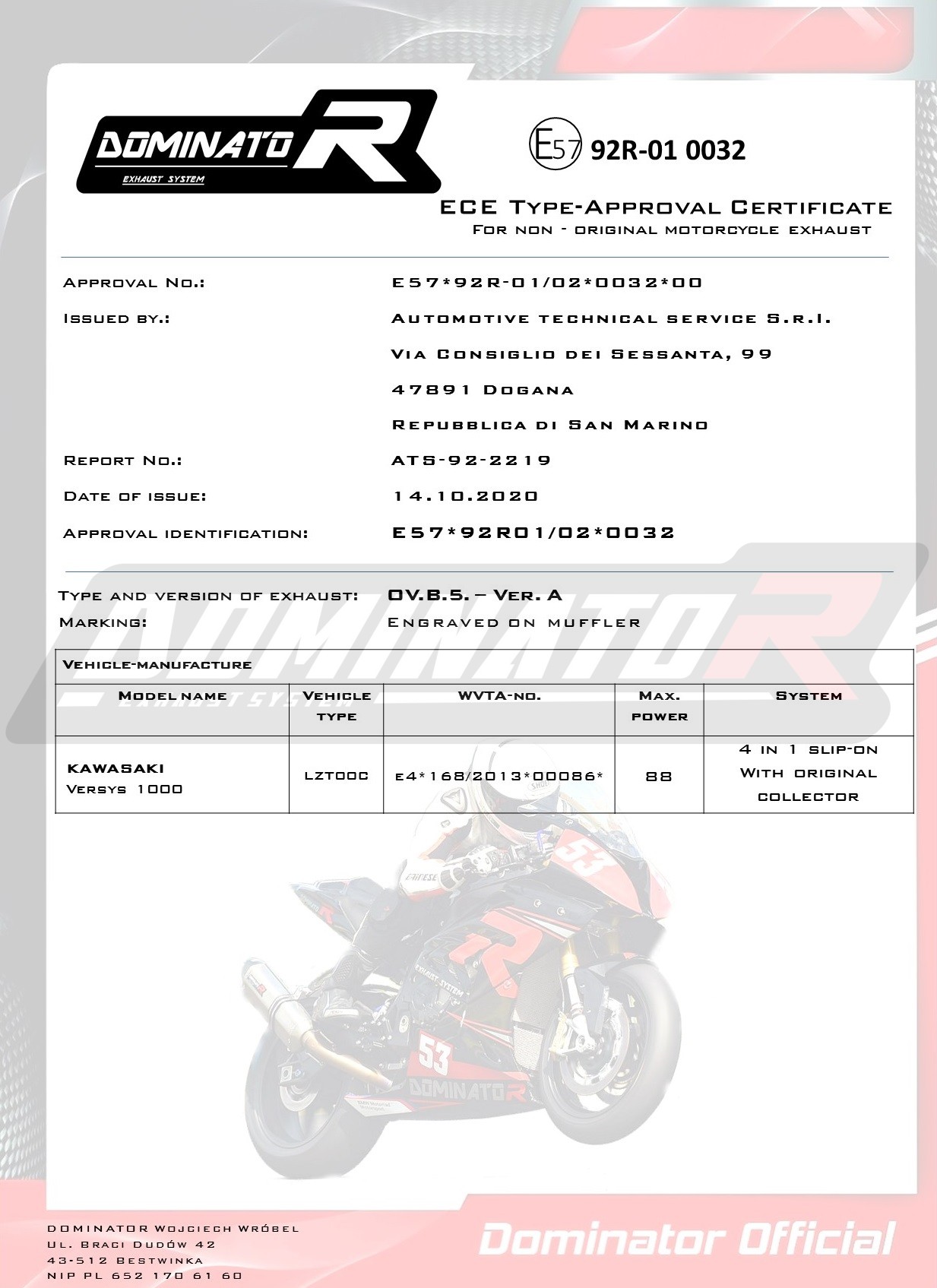 DOMINATOR Exhaust System - polish producer of Exhaust systems