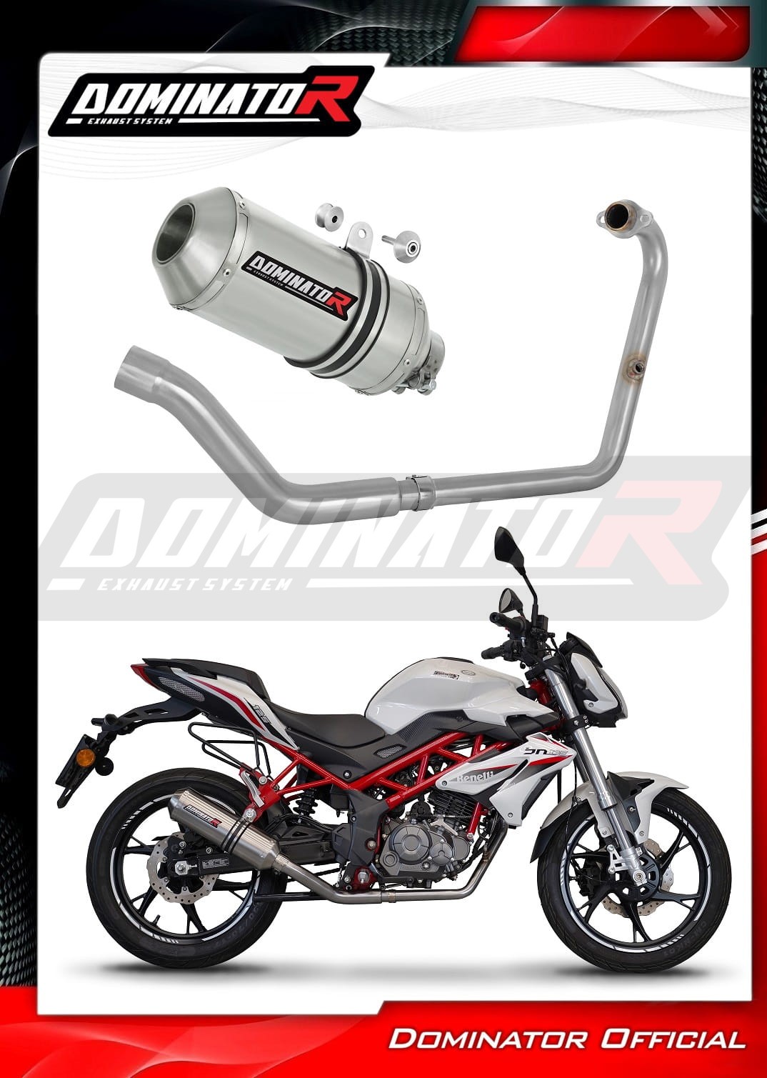Układ wydechowy Dominator zmieni charakter Twojego motocykla nadając mu unikalny dźwięk. Zestaw kolektor plus sportowy przelotowy tłumik Dominator spowoduje wzrost mocy i momentu obrotowego silnika, przy jednoczesnym obniżeniu wagi całego układu wydechowego.