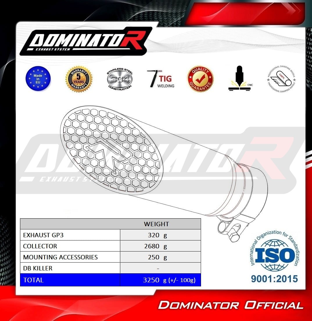 Układ wydechowy DOMINATOR z tłumikiem GP3 pasuje do motocykli: